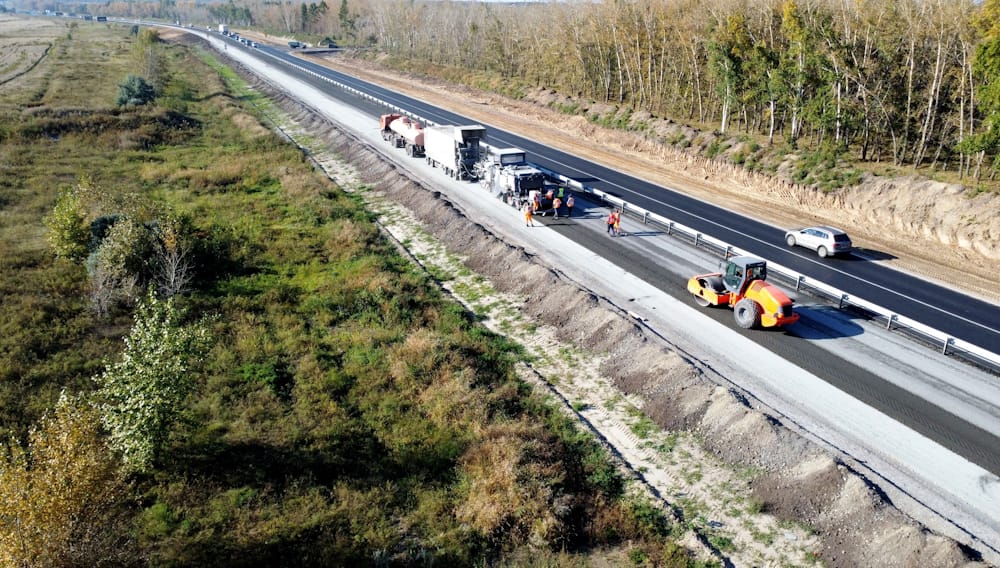 Дорожники уже завершили подготовительный этап и приступили устройству основного хода дороги. Также на отдельных участках ведется укладка асфальтобетонных слоев дорожной одежды будущей четырехполосной дороги.